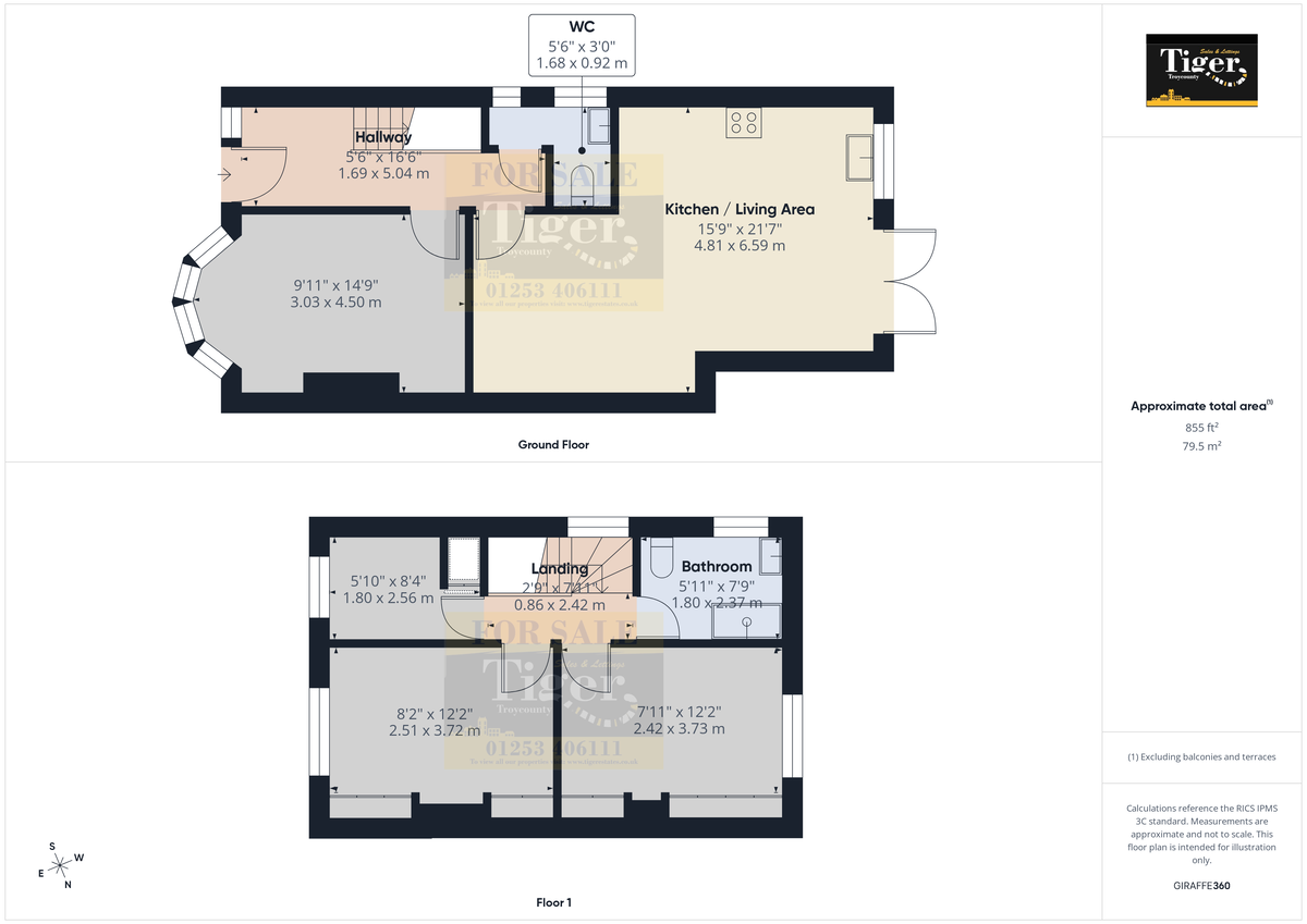 BATHROOM 5' 11" x 7' 9" (1.8m x 2.36m) Three piece suite comprising, shower, WC and wash hand basin