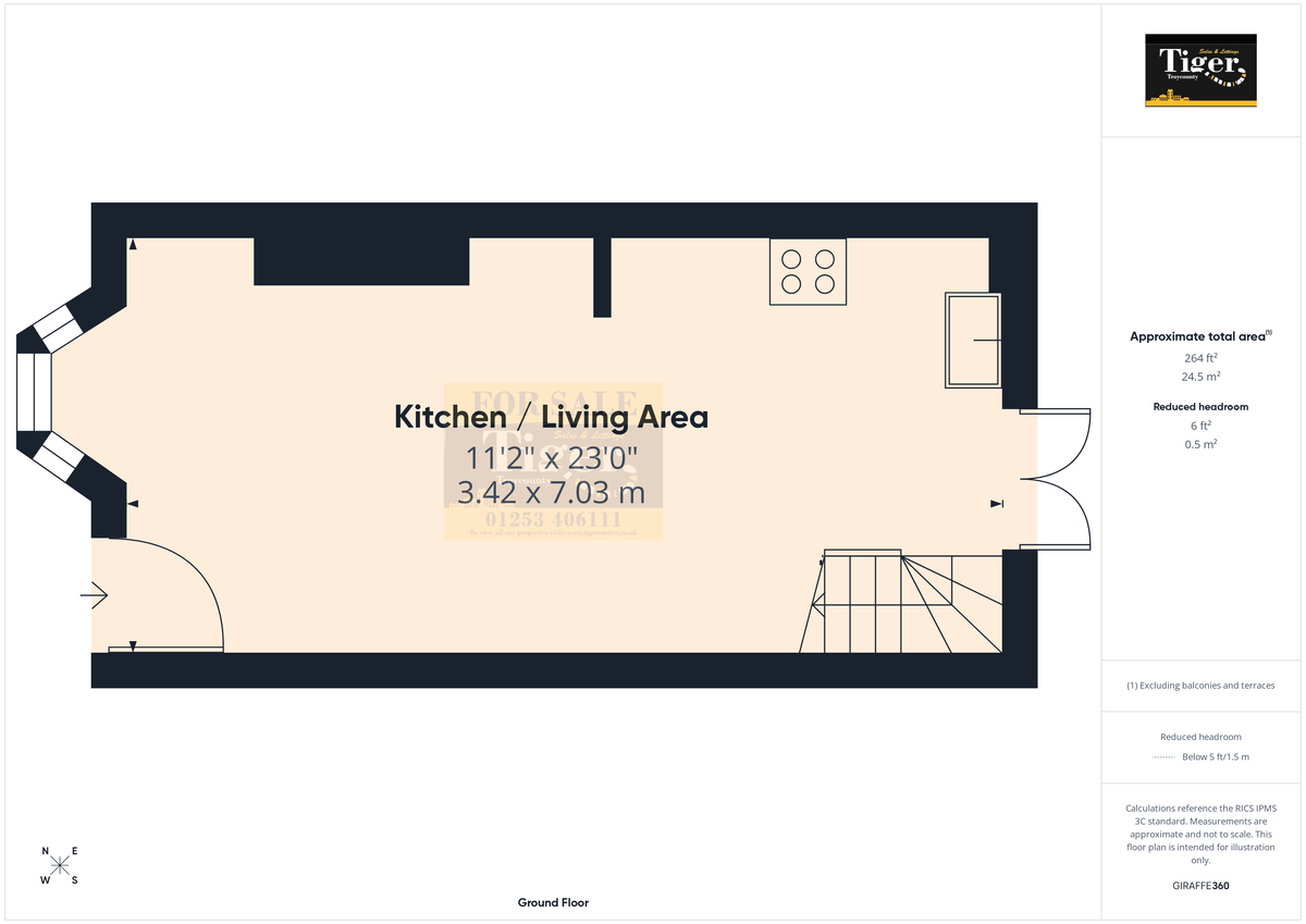 KITCHEN/LIVING AREA 23' 0" x 11' 2" (7.01m x 3.4m)