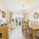 To the ground floor, a generous and welcoming lounge flows seamlessly into the dining area, creating an open and sociable space perfect for both everyday living and entertaining. French doors lead directly out to the impressive rear garden, allowing for plenty of natural light and easy indoor-outdoor living.