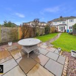 Externally, the property continues to impress. The generous rear garden is perfect for families, featuring a laid-to-lawn area, Indian stone paving, and a patio space ideal for outdoor dining and relaxation. A side driveway provides off-road parking and leads to a garage, offering further storage or parking options. To the front, the home is attractively presented with a range of plants and shrubs, enclosed by a boundary wall for added privacy and kerb appeal.
