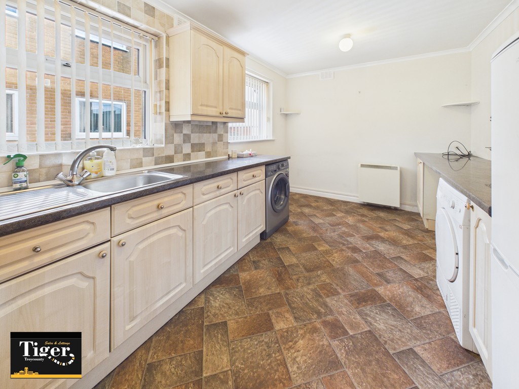 FULL DESCRIPTION This spacious and well located two double bedroom first floor purpose built apartment comprises entrance hallway, large living room, fitted kitchen/diner, shower room and two bedrooms with fitted furniture. The home is ideally located with parking and a garage. The home is warmed by electric heating and double glazing. NO CHAIN!
