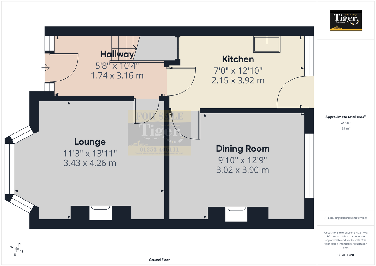 LOUNGE 13' 11" x 11' 3" (4.26m x 3.43m)