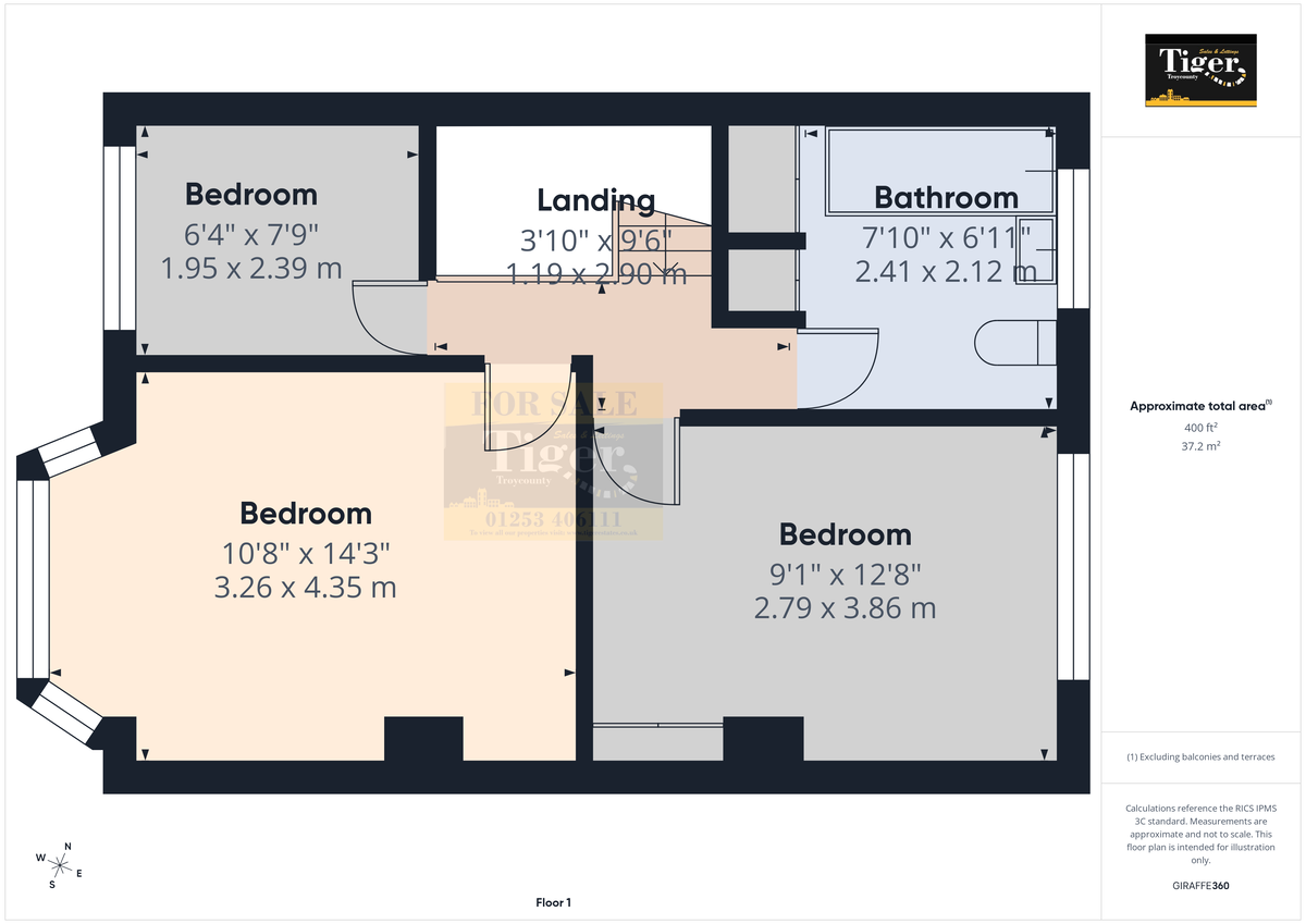 BEDROOM 14' 3" x 10' 8" (4.35m x 3.26m)